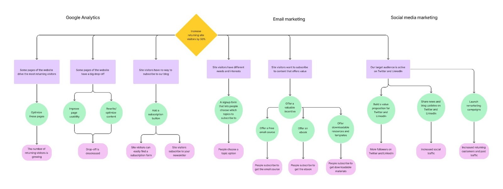 Think of it as a map for your content strategy. It helps you visualize all possible paths, plan your experiments, and test your assumptions before committing resources.